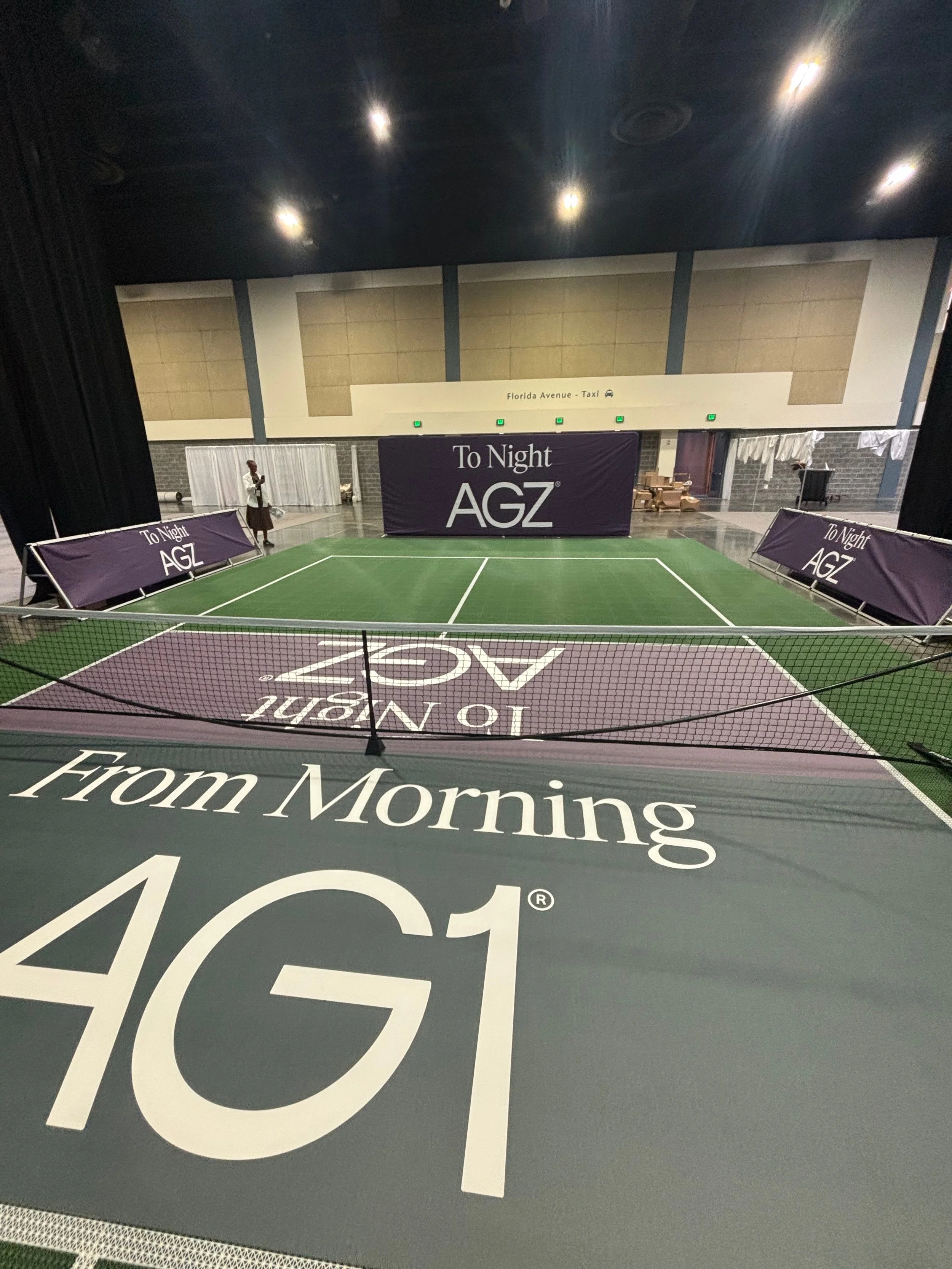 Pickleball Pop-Ups supplied one pickleball court for the wellness hub on site in the expo hall, open play sessions throughout the afternoon every day at the conference.